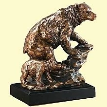 The core of this bear sculpture is resin and has a bronze finish. The texture of both the mother bear and cub is very real looking.