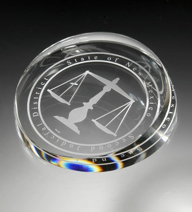 The top surface of this crystal paperweight is flat and slightly slanted. You can easily add customization.