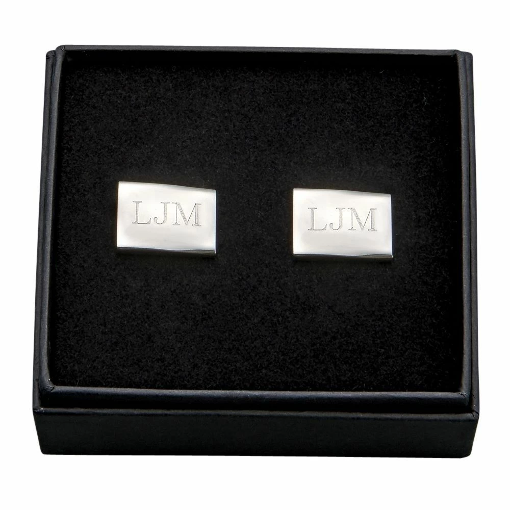 These Palladium finished cuff links have a non-tarnishing finish. Each cuff link measures 3/4 inch x 1/2 inch and is flat and engraveable. Packaged in a dark grey gift box.