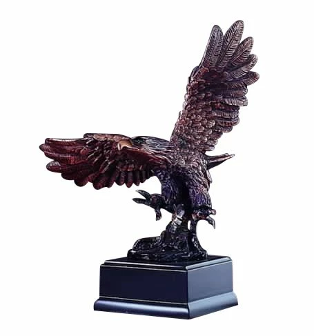 The feathers on the wings have space between them illustrating the eagle is slowing its flight as it descends. The eagle statue is 7 inches high to the tip of the higher wing. The eagle has a bronze finish.