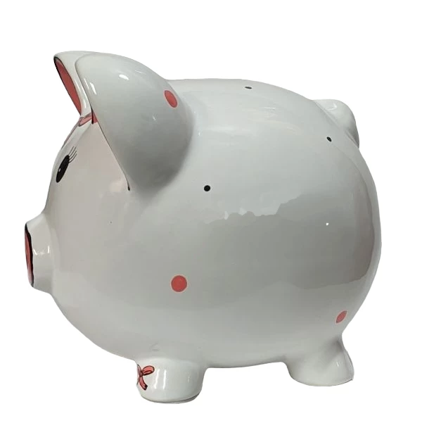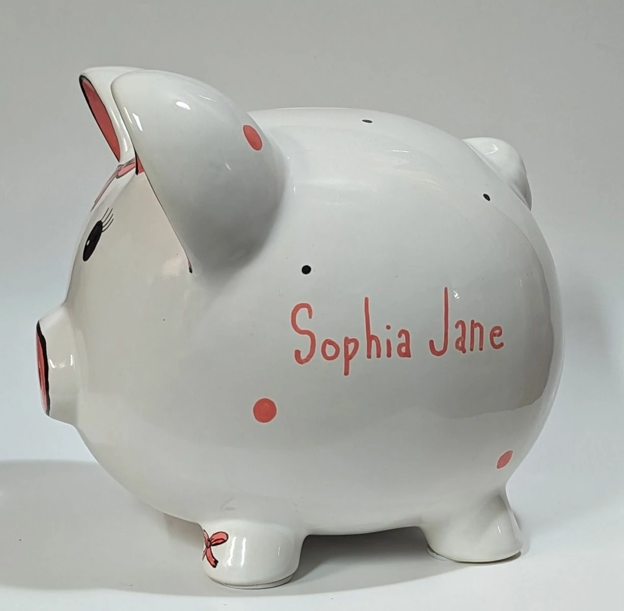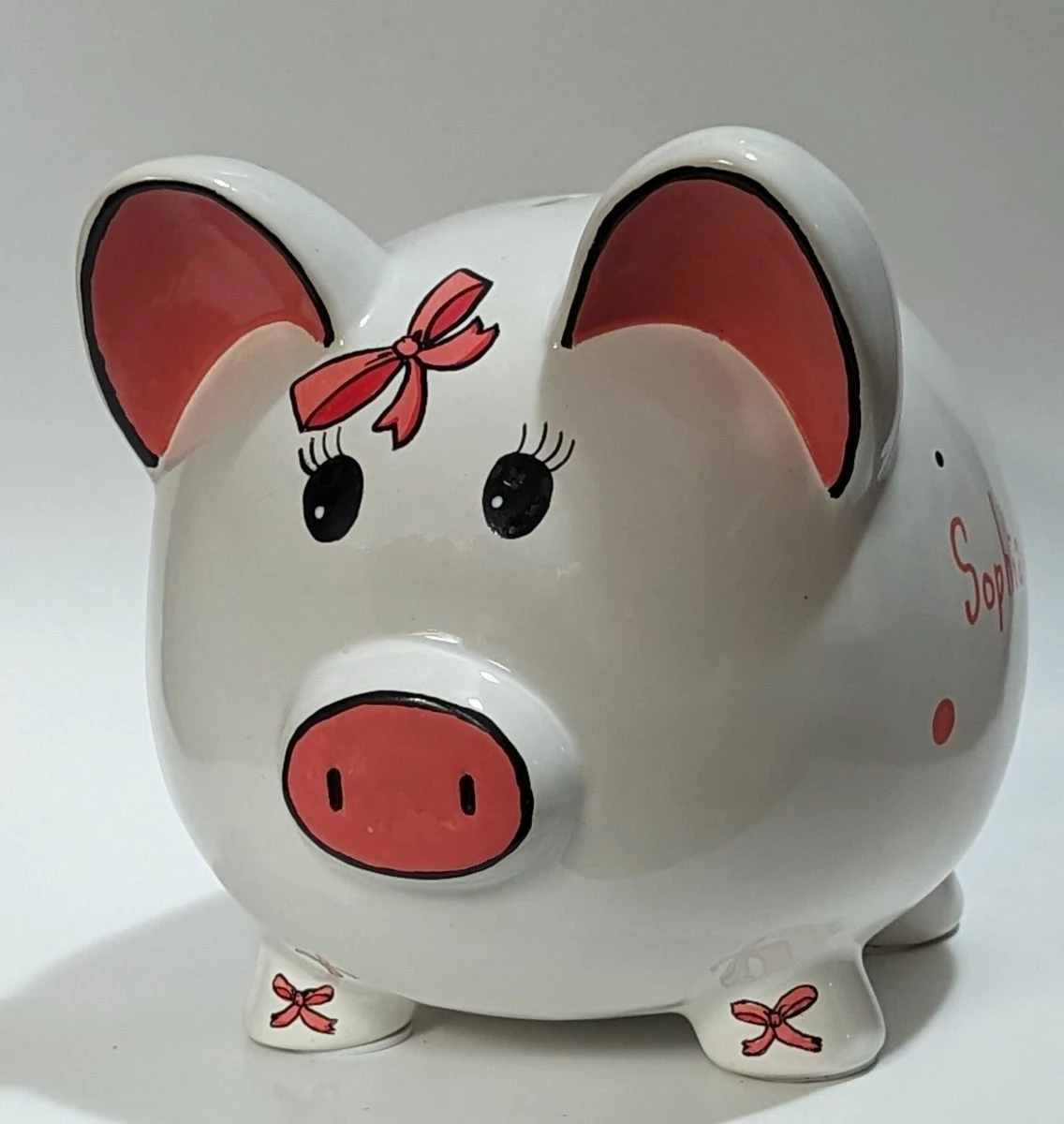 - Girl Piggy Bank with Pink Bows is Artist Original