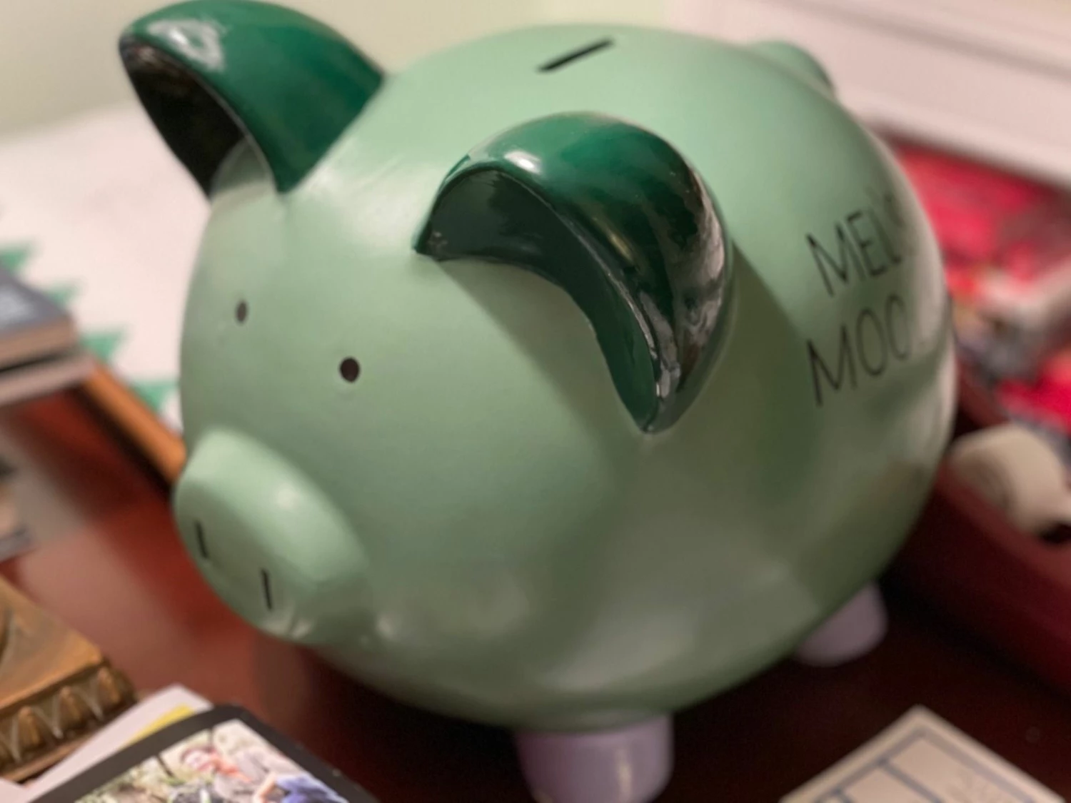 Our artist took a plain white ceramic piggy bank. The body of the pig she initially painted granny smith green….that’s our main photo. However, we can no longer get that shde of green. So, a customer requested dollar bill green and sent us an image of his pig. He loved the combination and we do too. Thus, future green custom piggy banks will have a body that is dollar green unless you select a different color. We have 8 shades of green. But, you could decide on black or brown or…..we have 80 colors. If all these decisions are too much, we have a drop down.