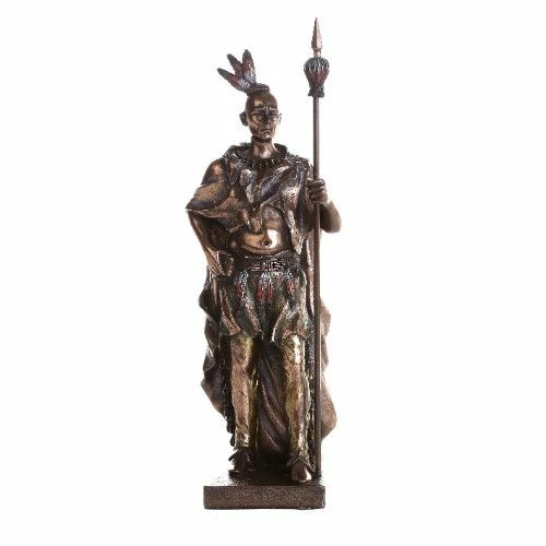 The land provided the Indian his food and what he wore. This statue illustrates how he used the land for his attire. A buffalo tooth necklace encircles his neck. Statue is made of resin and has been hand painted.