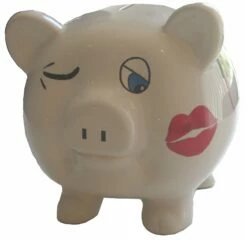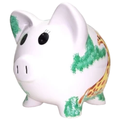 Free personalization is possible on the left side of the pig. We would paint in black the name between the two left dots shown in 1st image. The name would begin behind the base of the ear and continue towards the right dot.