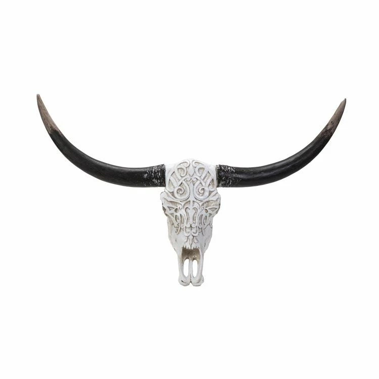 This Longhorn skull is made of resin and has been hand painted. You can add decor AND history to your wall with this large, 27 inch, rendition.