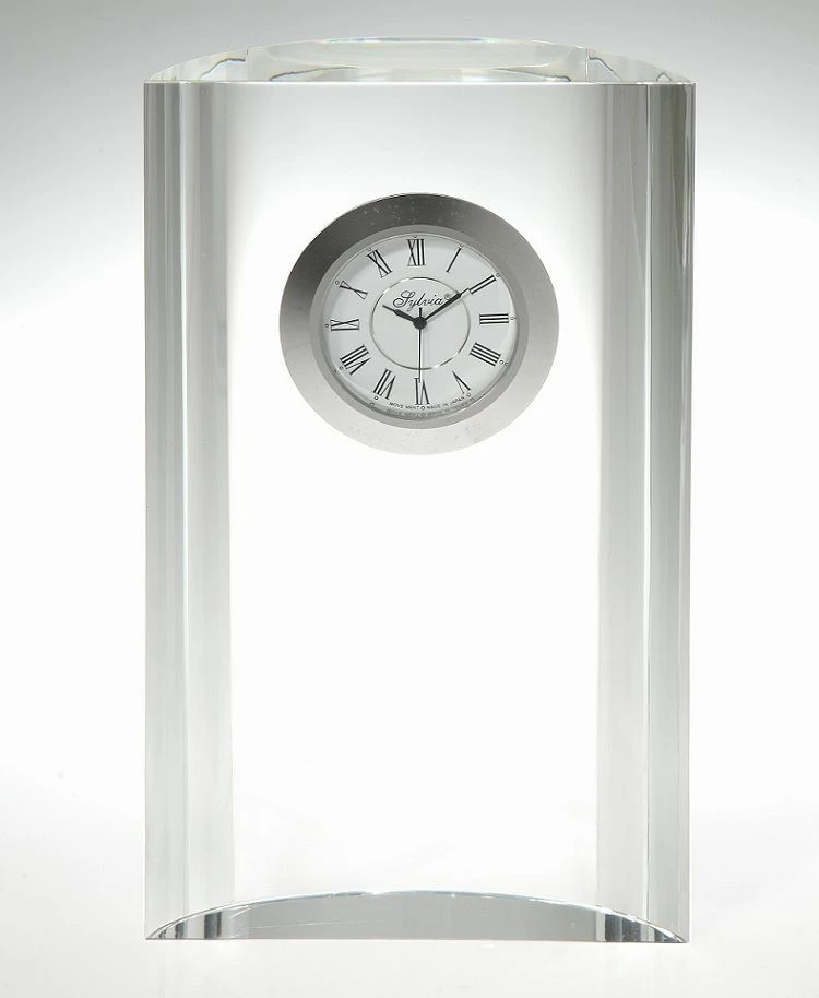 Mirage Crystal Clock has a curved surface creating a unique look. The clock has been embedded in the upper part of the crystal So you have lots of room for personalization.