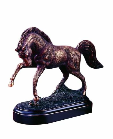 This horse sculpture captures the wild spirit of the equine creature in the wild from its flowing mane to its prancing hooves. A great gift for the horse lover in your life. Its small footprint makes it ideal for many places in your home or office. Made from resin and electroplated with bronze..
