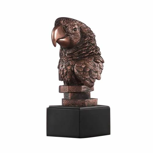 Parrot Head is a bronze color bust which stands 8 inches tall.