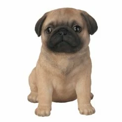 The Pug is a very distinctive breed of dog with its black wrinkled nose and mouth. It is an wonderful companion with its moderate temperament. This Pug is made of resin and has been hand painted. Since it is made of resin, all of the wrinkles look realistic.