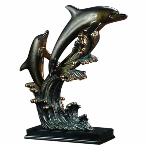 Simply Gorgeous. Everyone loves the free spirit of Dolphins. That spirit has been captured in this delightful dolphin sculpture. And, it’s BIG! About 2 feet tall and 2 feet wide. It’s needs to sit in a place of honor since it will get lots of “awes.”