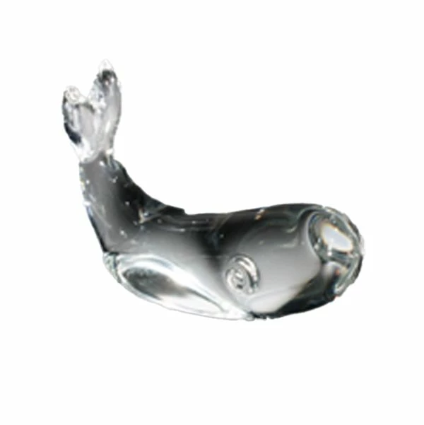 Made in the USA by a skilled craftsman this crystal whale statue makes quite a statement. Not boring by being flat, but moving. The craftsman even captured a bit of whimsy with the raised tail and eyes.
