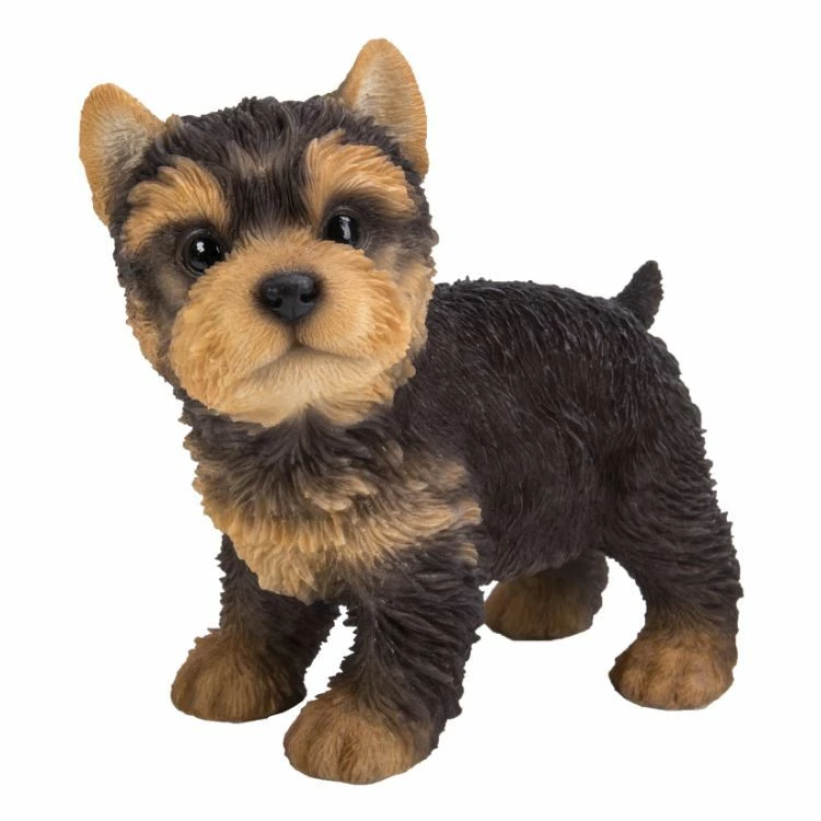 This “Yorkie” statue is that of a puppy. We also have an “adult” Yorkie so you can buy a family to enjoy. The statue is made of resin and then hand painted to achieve its realistica appearance. It is an “indoor” dog.